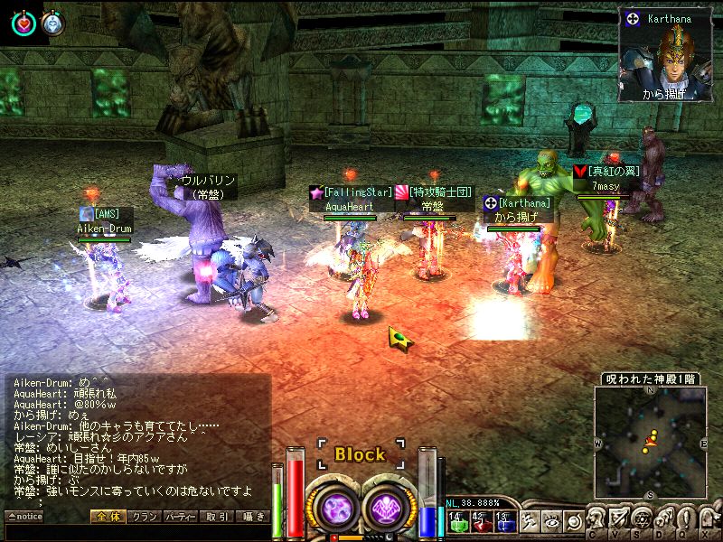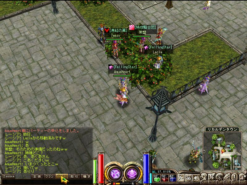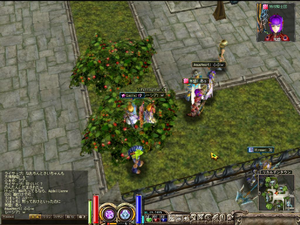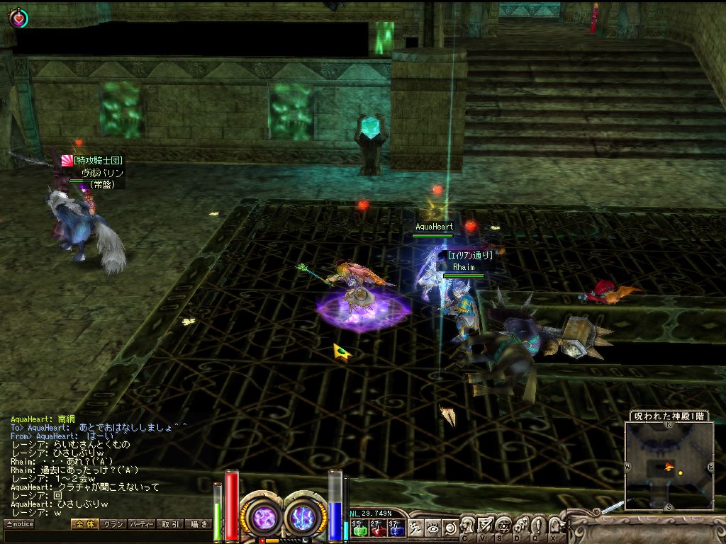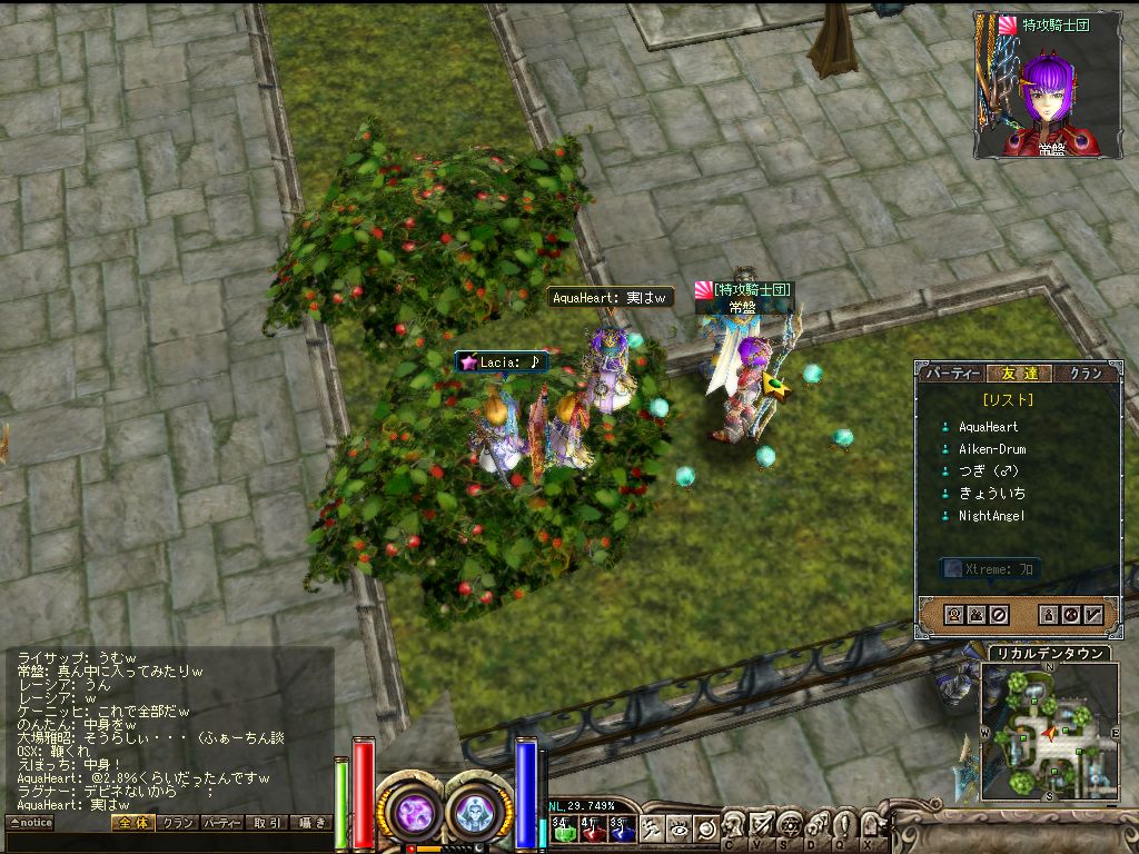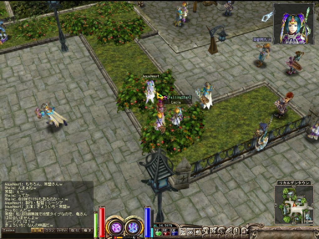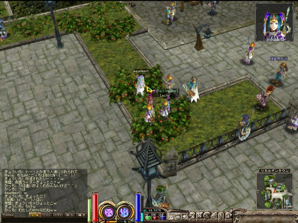 というわけで、ささっと補給を済ませて狩り場に戻る。今回はAquaHeartコアがあるので、リカ出現地点→水薬購入→ユニオンコア使用という無駄のない行動(いつも狩り中でのレーシアの補給は全力ダッシュです。回復役なのであまり時間かけられないのです、皆さん私がいる時は私のGHがあるからと、赤の積載を少なめに調整していますので…w)。