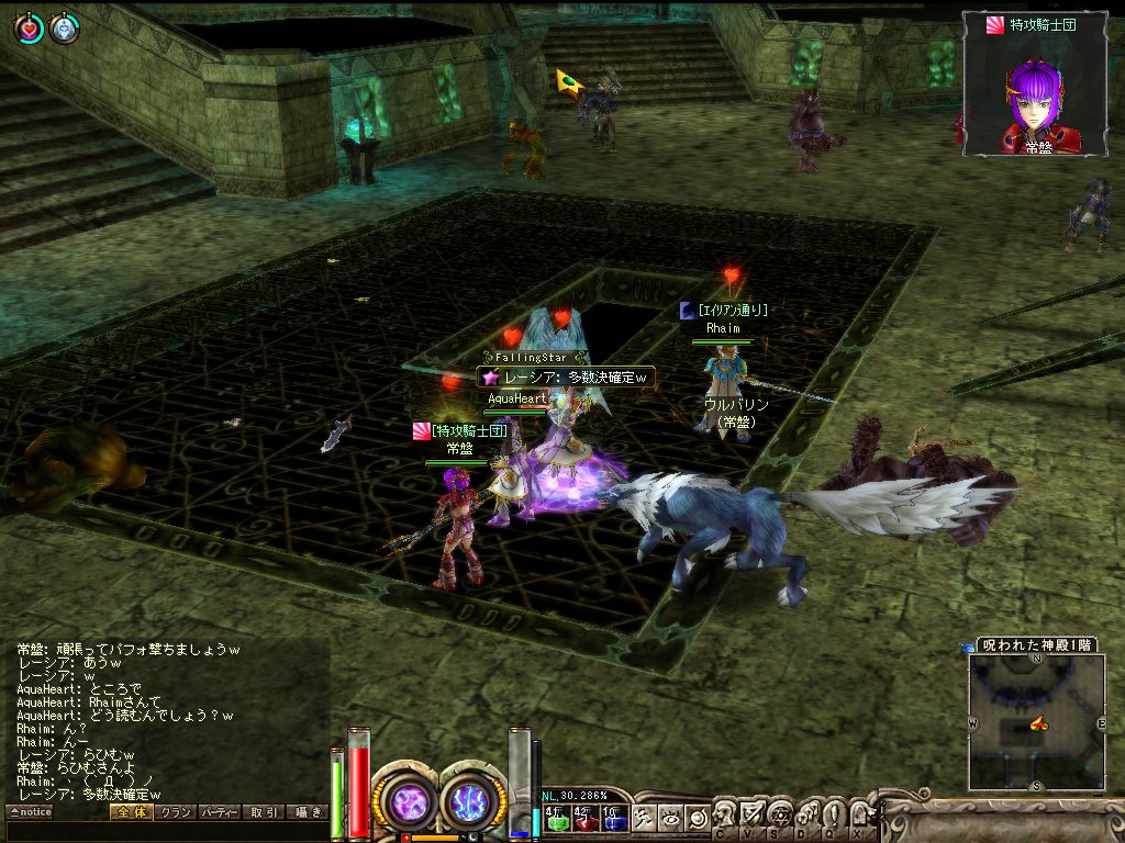 S鯖の光景、Laciaが(恒例の左手マウスにて)いつもの位置付近に進みます。ちゃんとサブキャラでも