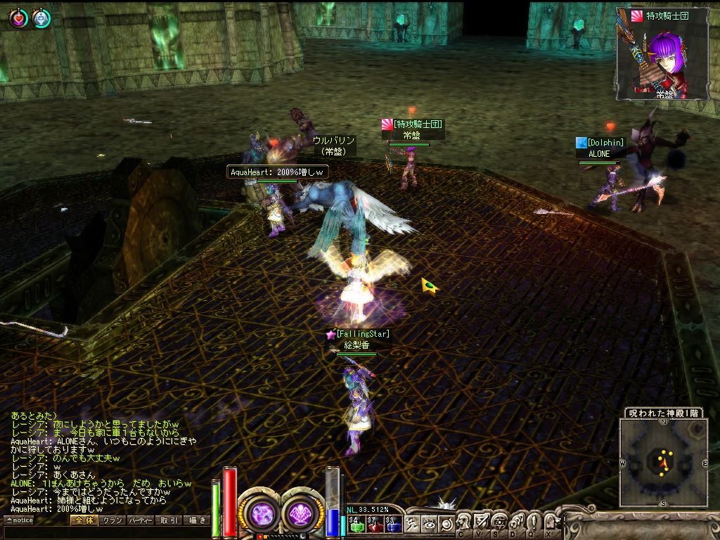 休憩後、さきほどS鯖にてお話したルイーナさん(☆彡)をつれて、旭龍さん、AquaHeartさん、絵梨香さん(☆彡)で狩り。